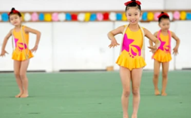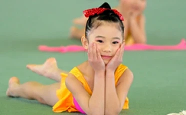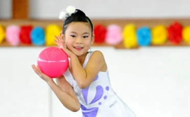 主なレッスン内容 … 柔軟体操、側転や倒立などのアクロバット、リボンやボールなどの手具操作