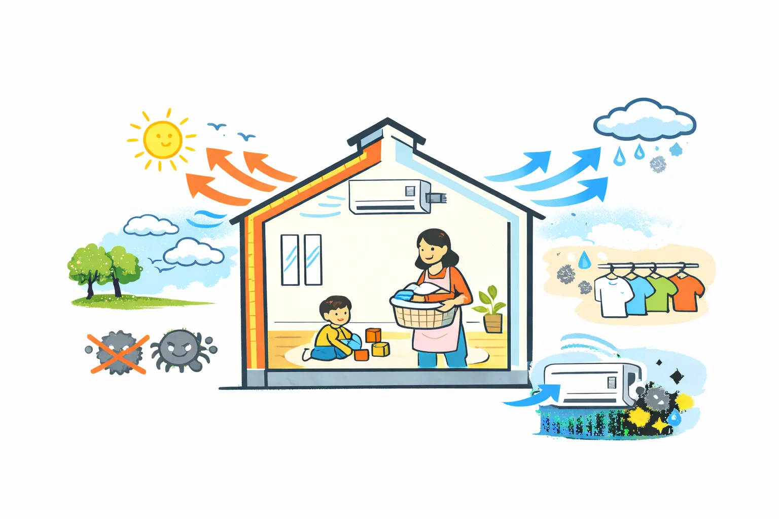 湿気や結露を抑え、カビやダニの発生リスクを低減。