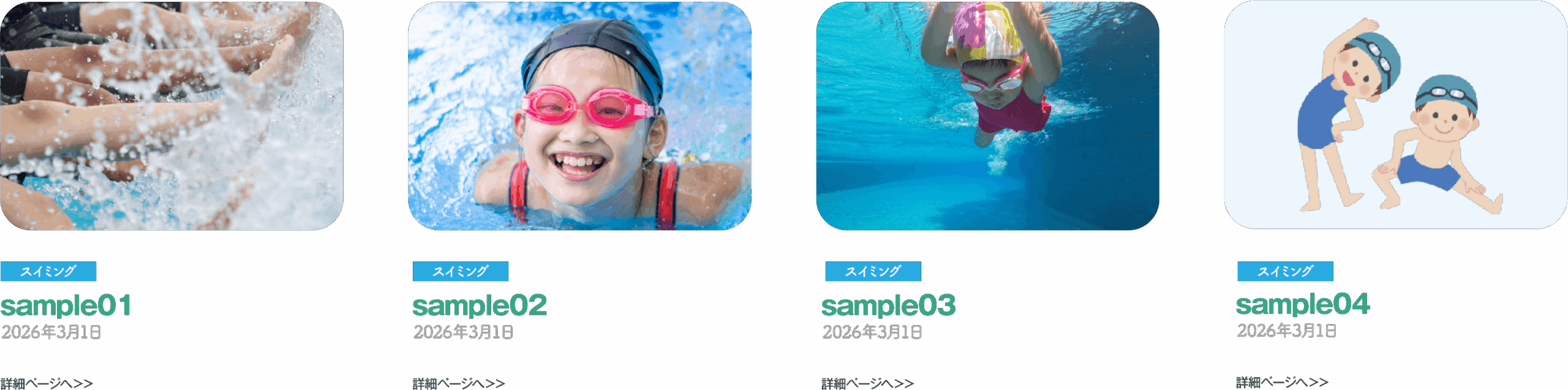 また、記録へのチャレンジや大会参加などにも取り組み、成長段階に応じた無理のないステップアップを通して、お子さま一人ひとりの可能性を広げていきます。