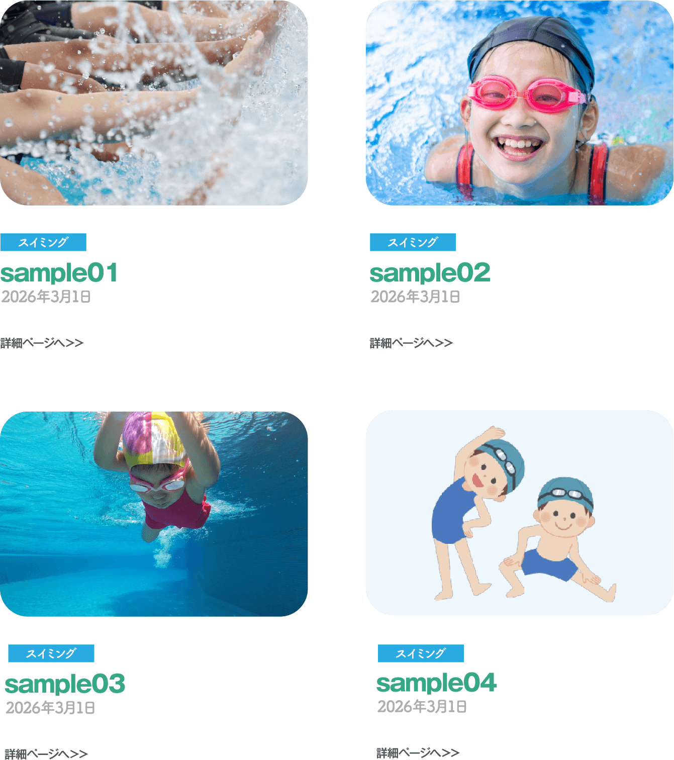 確かな技術と、チャレンジ精神を育てる。 基礎体力の向上から4泳法の習得まで、個々の習熟度に合わせて丁寧に指導します。目標を一つずつクリアする達成感は、大きな自信へと繋がります。心と体の健やかな成長を支える、充実のプログラムです。